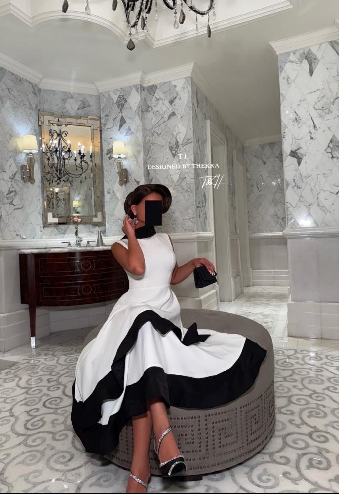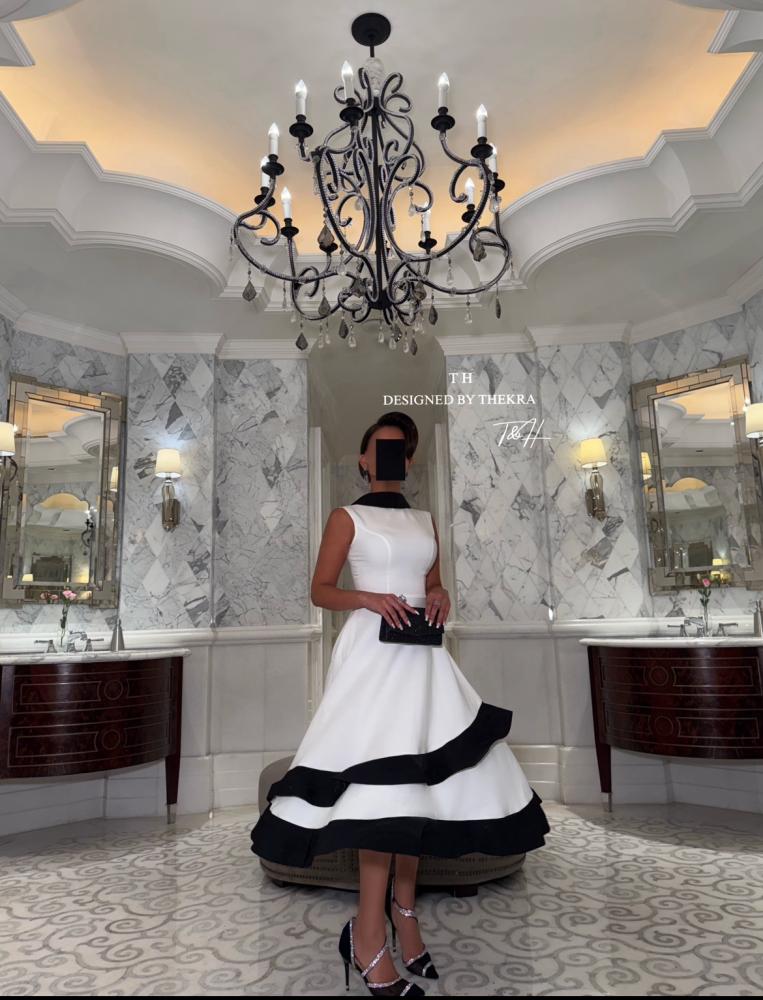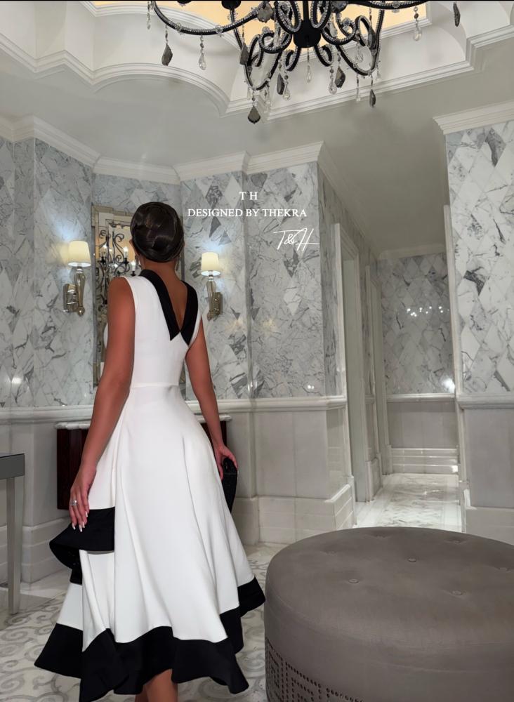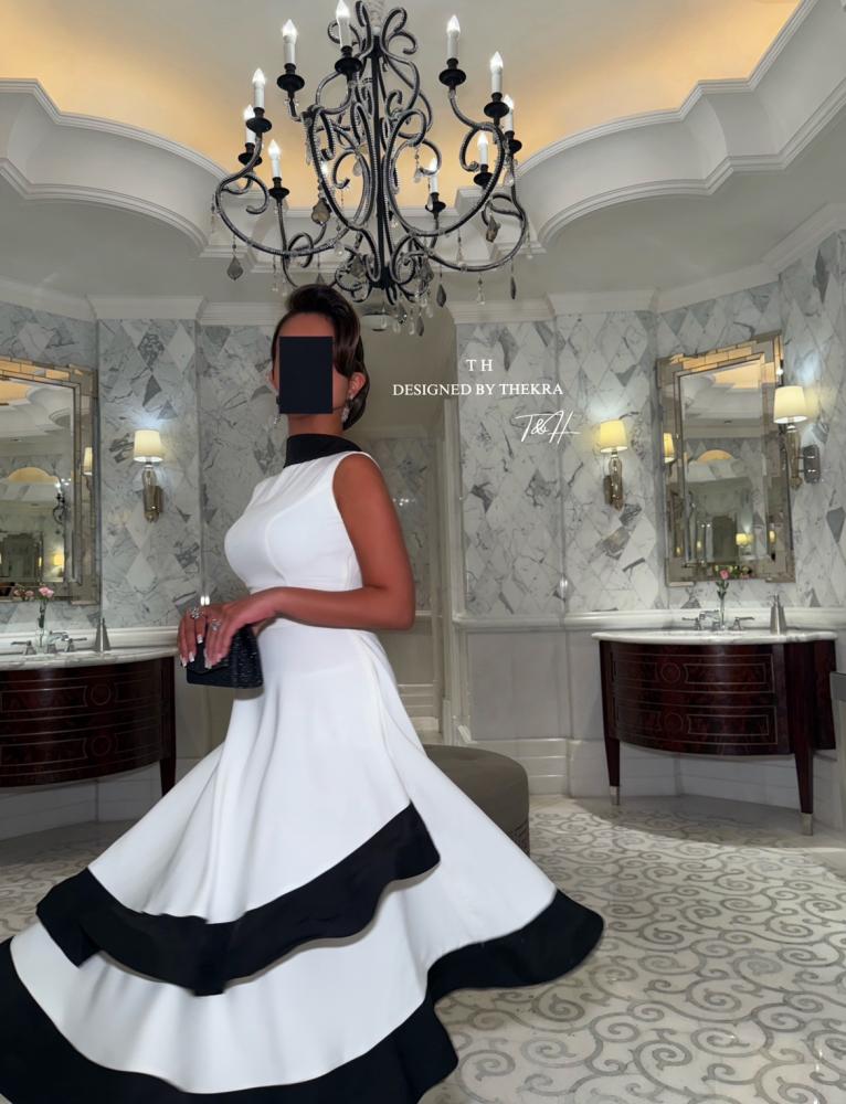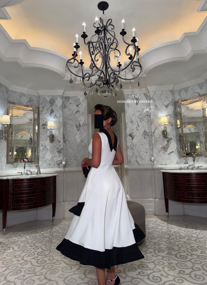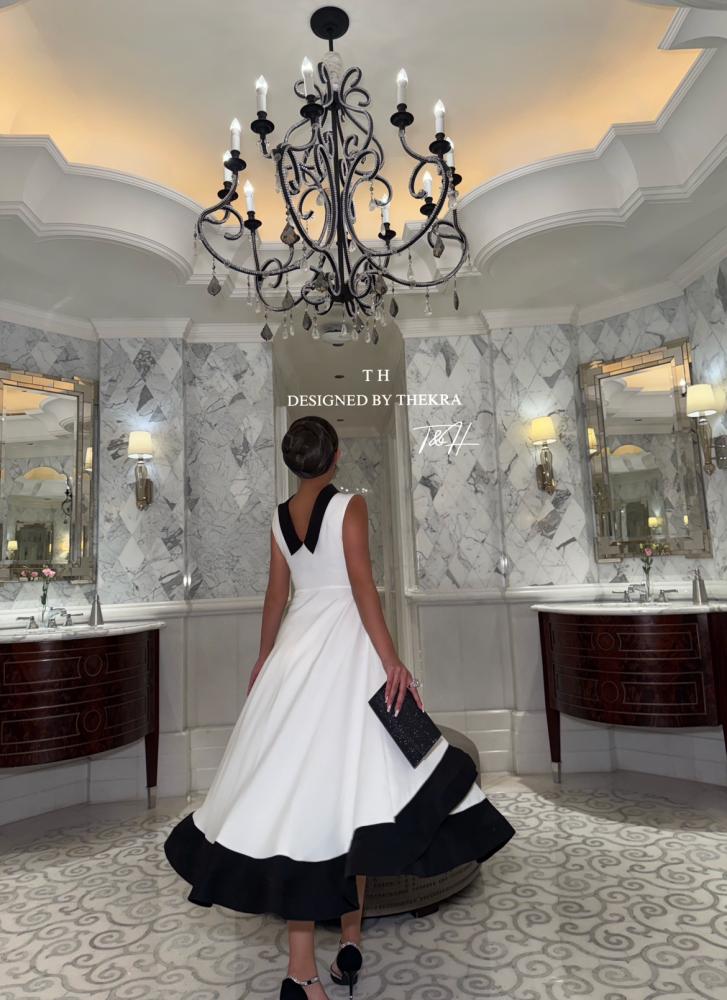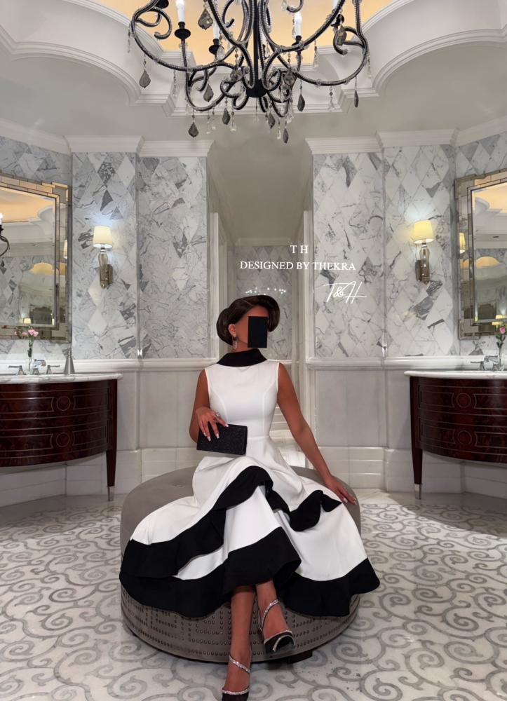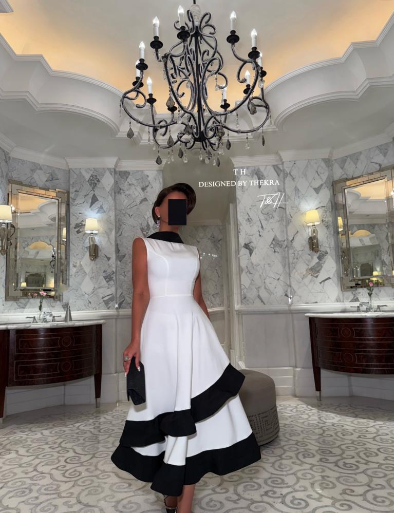 فستان كريب اندونيسي اوف وايت بتموجات لون اسود من الاسفل