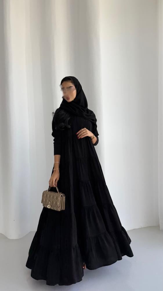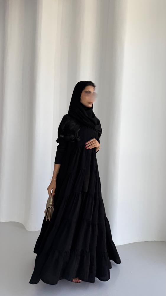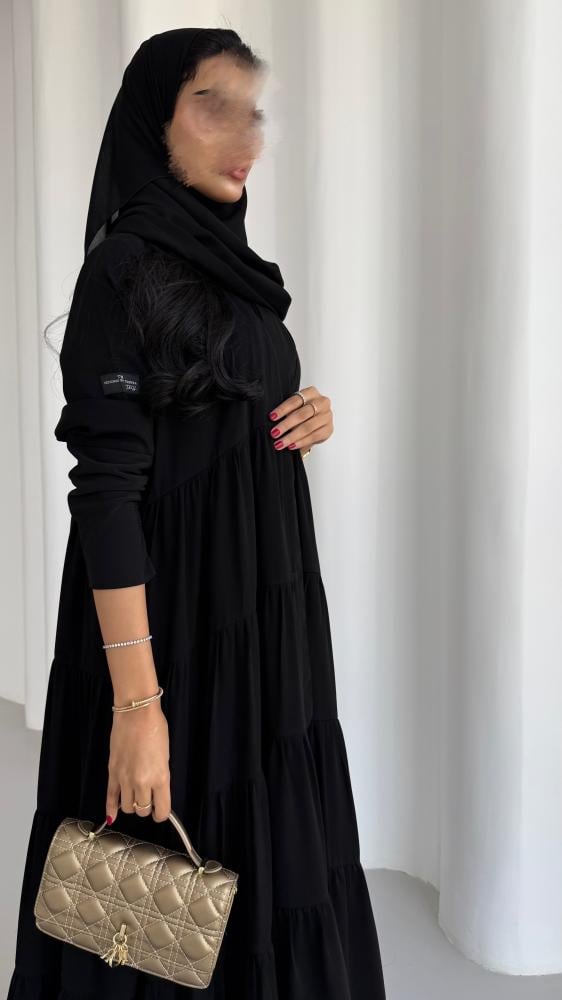 SUMMER COLLECTION التفاصيـل: عباية كريب اسود بارد، قصة كلوش، مكسرة بكسرات كامل العباية، كم سترتش اسود.