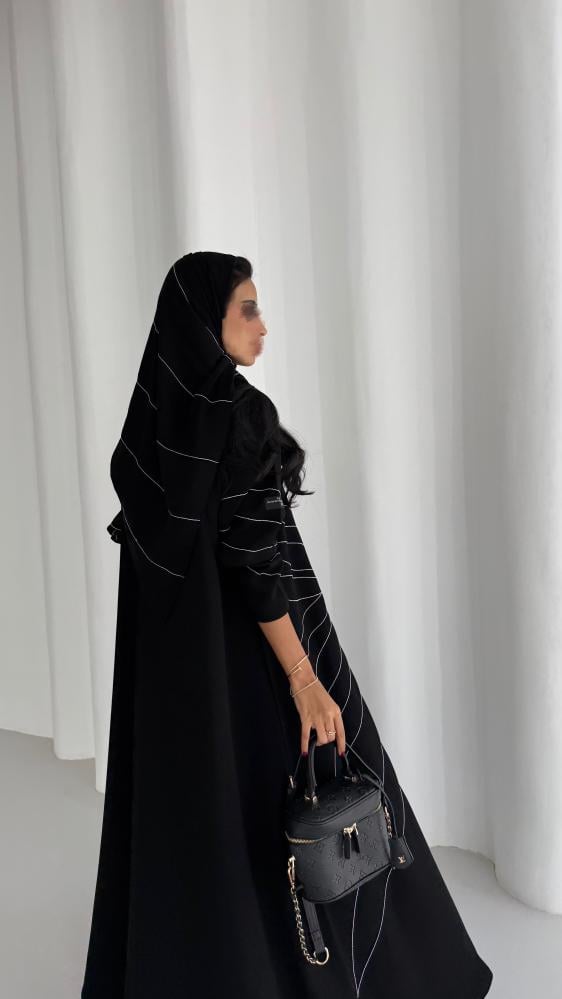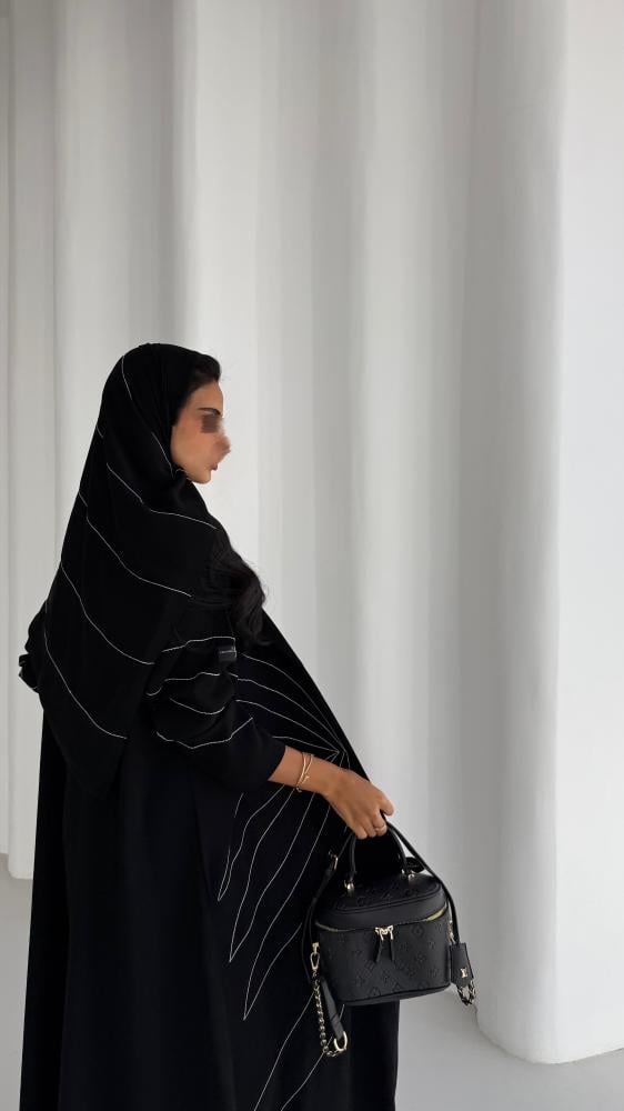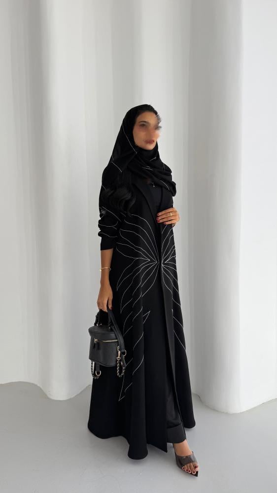 Summer collectionالتفاصيـل: عباية كريب اسود فاحم، تطريز ابيض في منتصف العباية، طرحة مطرزة بالكامل، قصة كلوش.