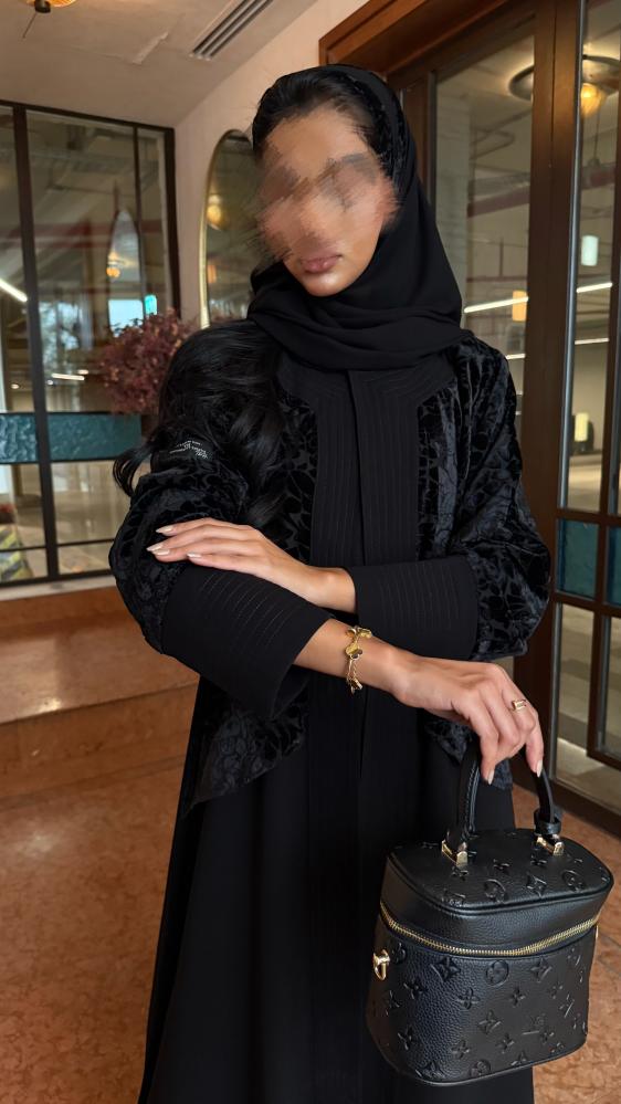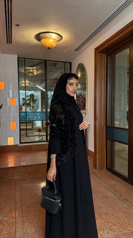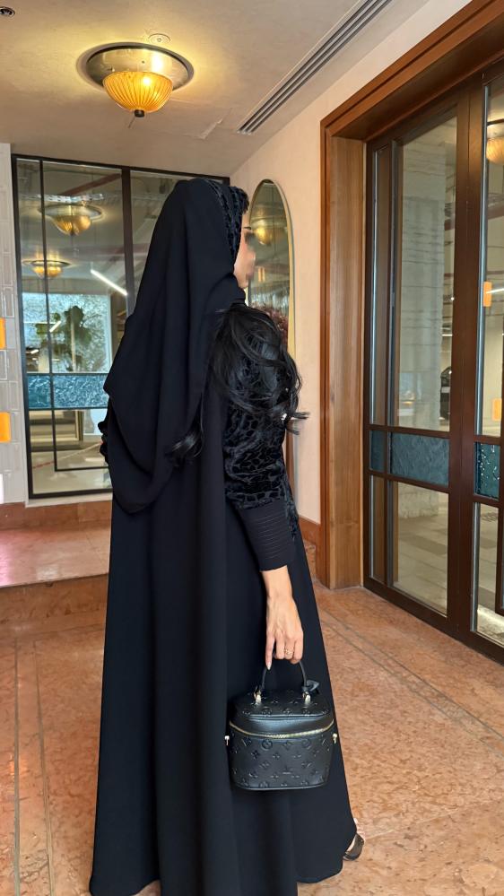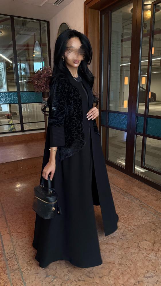 Winter collection..-كمية محدودة-التفاصيـل: عباية كريب اسود فاحم ومخمل شيفون منقش بالأعلى، قصة كلوش، طرحة طرف مخمل شيفون.